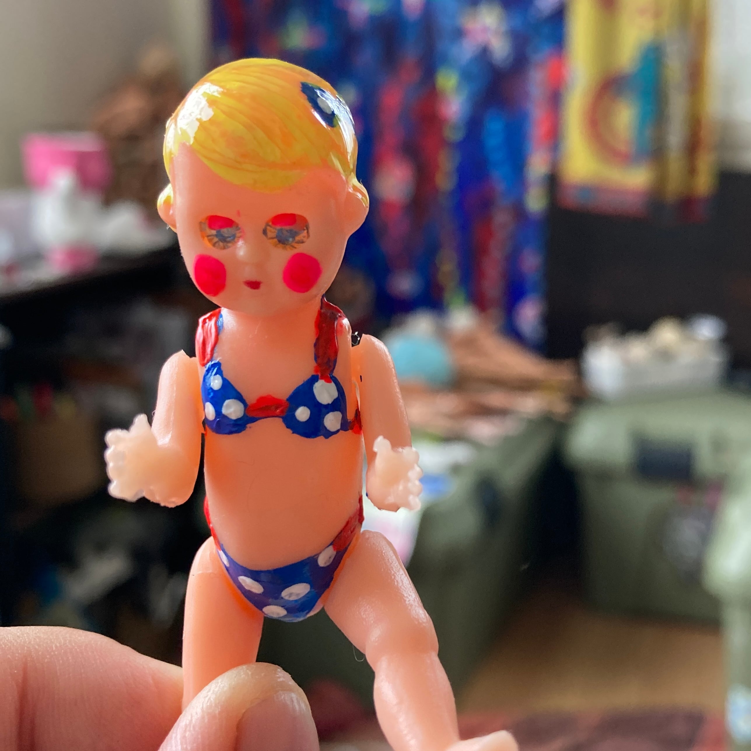太陽の光が踊るメガネです! 作ってみると想像よりデカくなった そんな超不自然メガネです。 歪みや不自然感を楽しめる使用になって います。 レンズが無く、目の前がさえぎられないので 常用出来ます。目が悪い場合はコンタクトを 使用してかけたら大丈夫です。 既存のメガネをカスタマイズしています。 触角部分には針金が入っているのと パテで形作られているのでとても丈夫です。 また、UVレジンでコーティングして あるのでテカテカしています。耳に当たる部分 ネジで固定してある部分は、耳の当たりを 良くするため、あえて着色やコーティングは していません。 かなり頑丈で、重量が普通のメガネに比べると 重いです。慣れると問題ありませんが かけ始めは違和感があるので、メガネの鼻の 部分に鼻パッドを付けたり、耳の部分に 付けるズレ防止のゴムを通したり工夫して みて下さい。 (私は度アリのカスタマイズメガネを常用 しています。鼻の部分にはクッションとして メイク用のスポンジを薄く切ったものを 耳にはズレ防止用のゴムを通しています。 快適です!) 自分でかけることはもちろん、使わない時は ヘッドマネキンにメガネをかけてあげても マネキンが可愛くなります。 メガネは、破損のないように梱包して 発送します。 Instagramで紹介した作品を販売しています。 画像や動画を撮る際に着用したものに なるので、気にならない方のみの 販売になります。 最後に、私の話。目が悪いので度入りの カスタマイズメガネを常用して 結構長くなります。注目を集めるので 初めはかなり焦りますが、ずっと付けてて 『この人はそういう人なのか』と 周りの人に認識され始めると 面白かったりします。常用オススメです! わからない事があれば何でも 聞いてくださいね! 縦10cm 横17cm 重さ85g