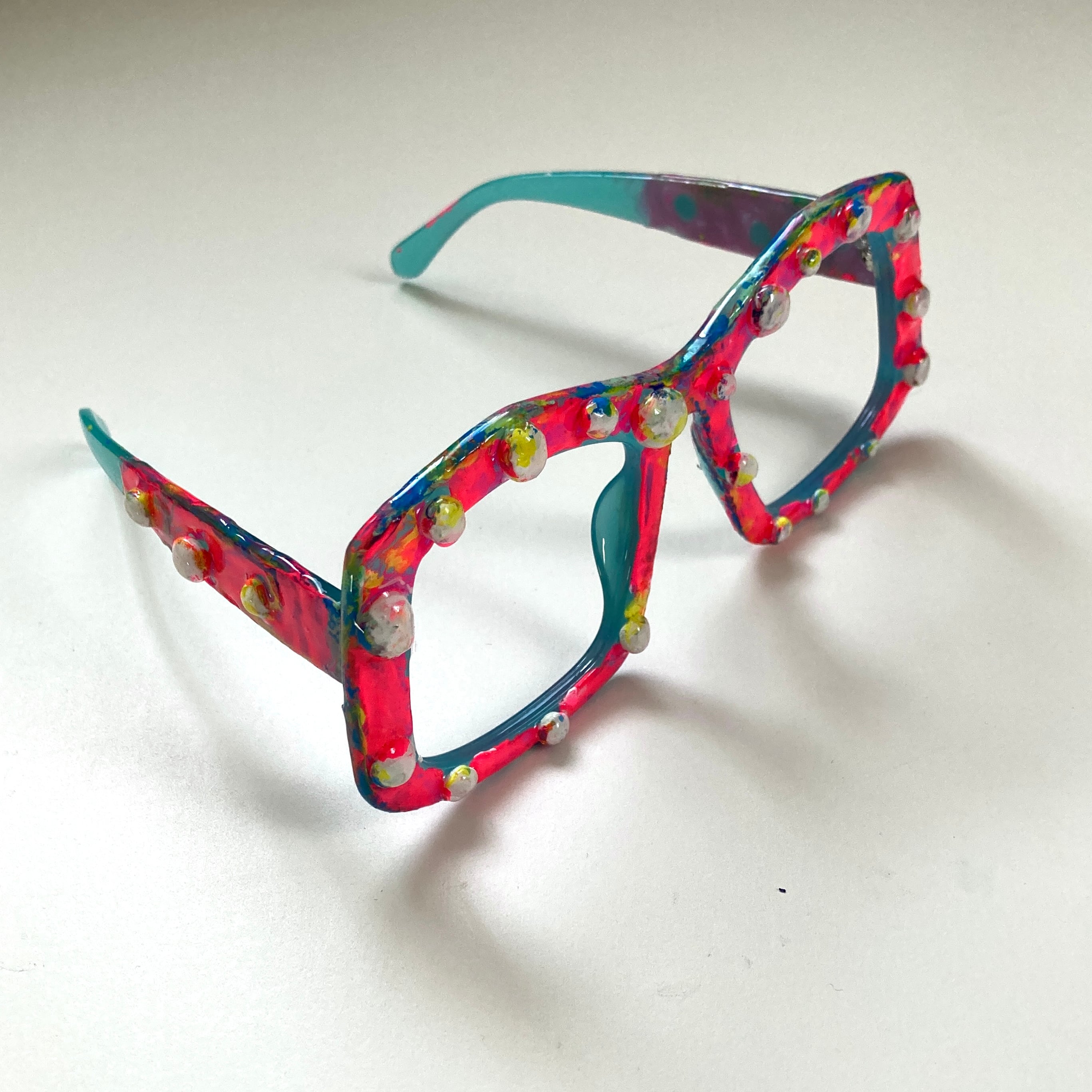 パテで装飾していて丈夫です。また、UVレジンでコーティングしてあるので、テカテカしています。内側、耳に当たる部分、ネジで固定してある部分は、肌の当たりを良くするため、あえて着色やコーティングはしていません。