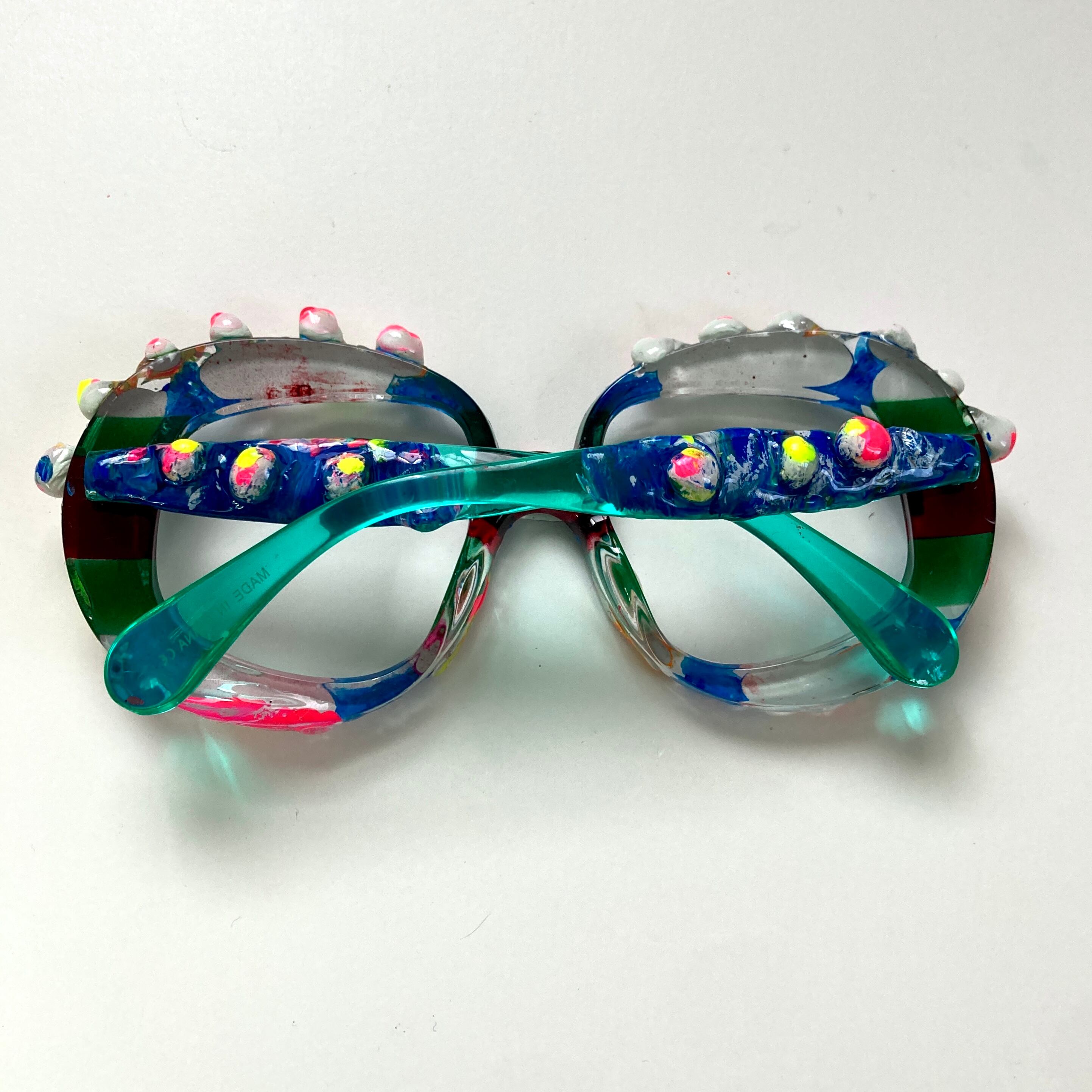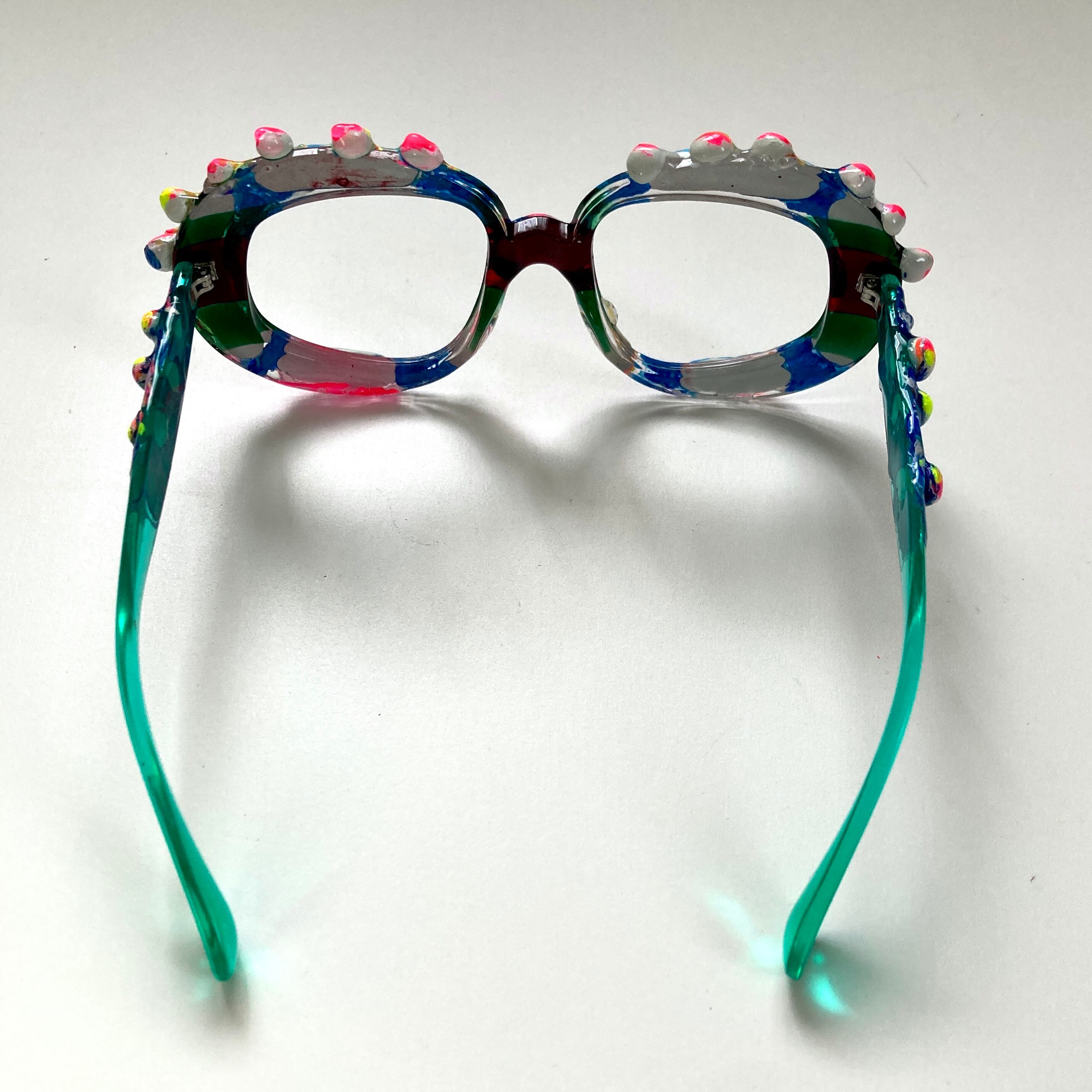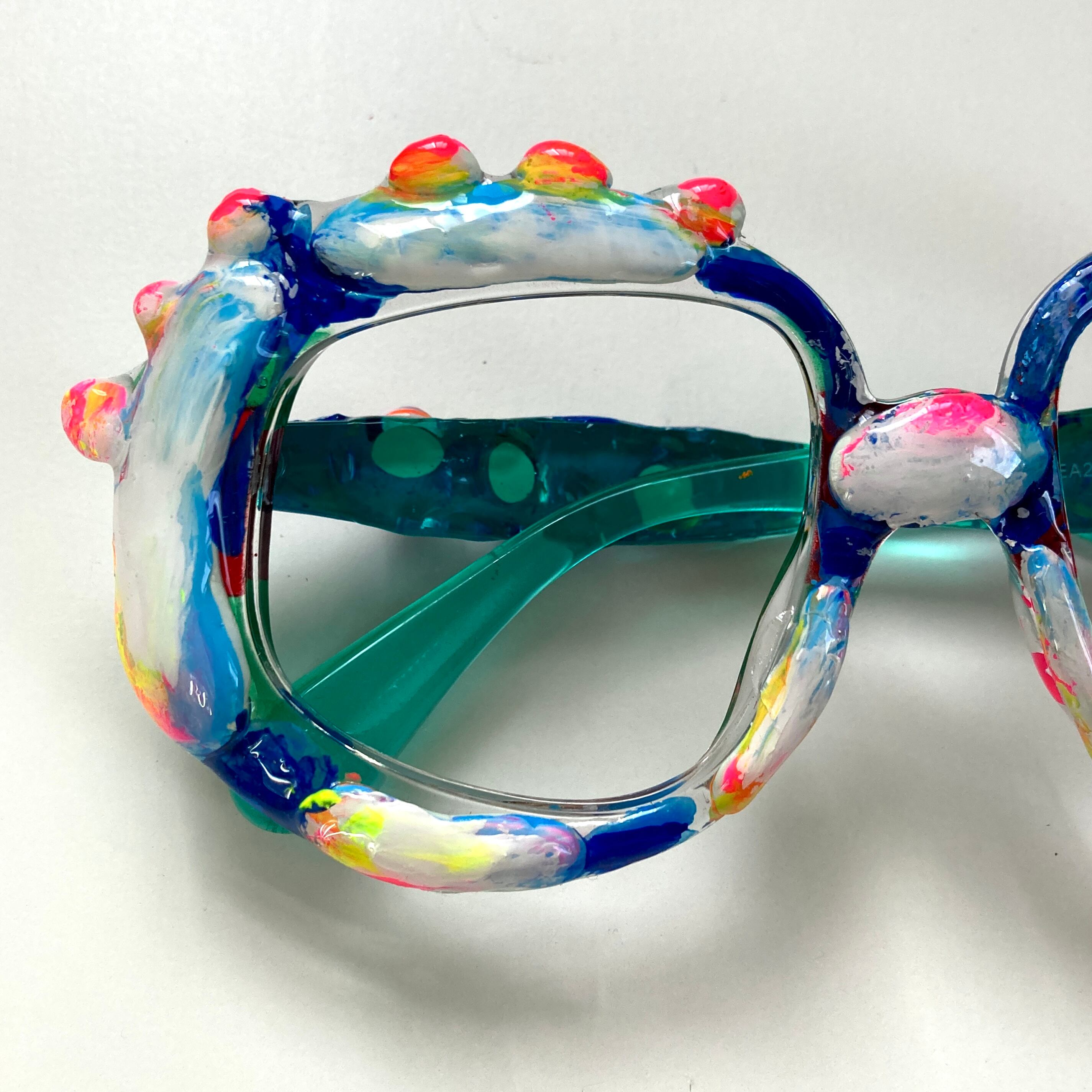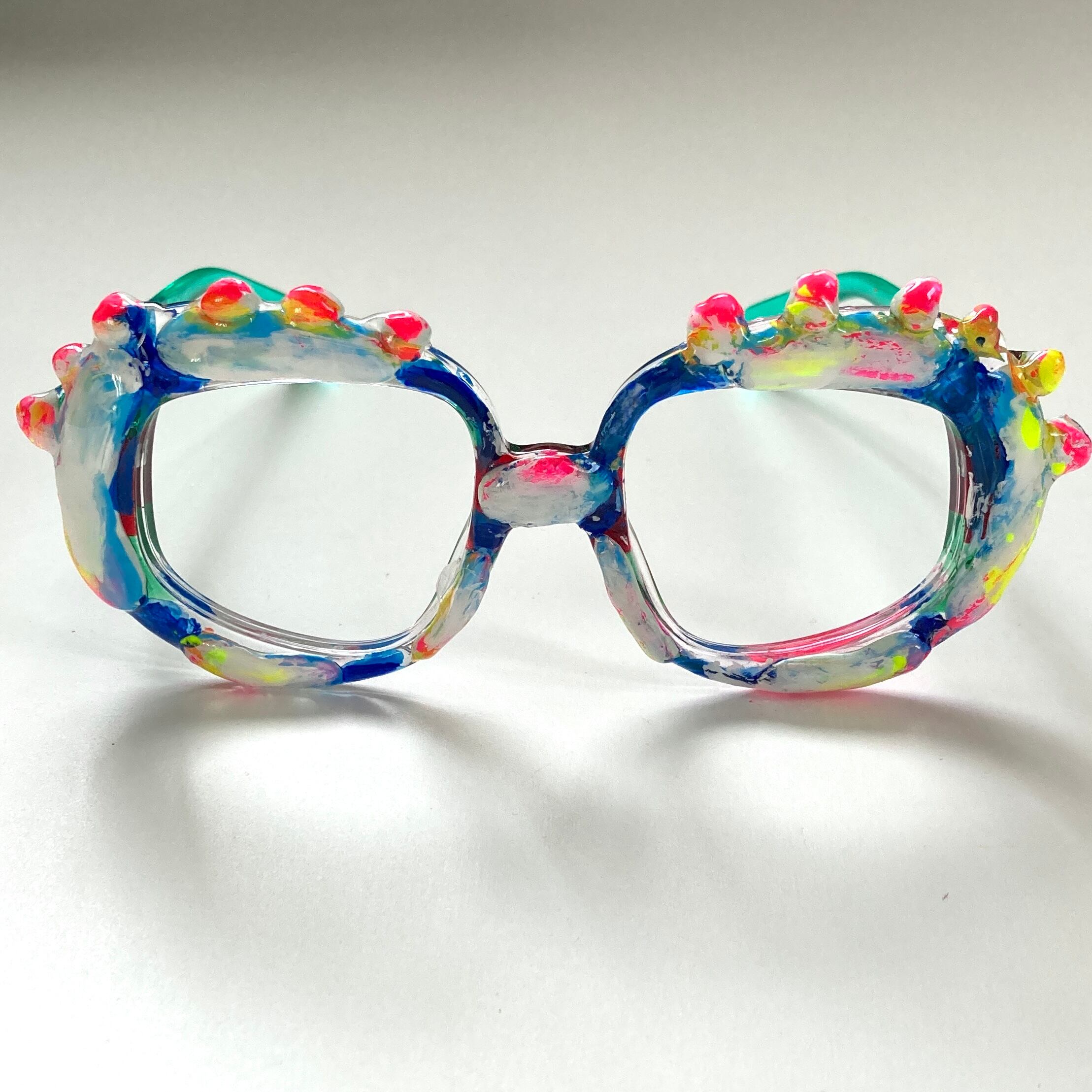 パテで装飾していて丈夫です。また、UVレジンでコーティングしてあるので、テカテカしています。内側、耳に当たる部分、ネジで固定してある部分は、肌の当たりを良くするため、あえて着色やコーティングはしていません。