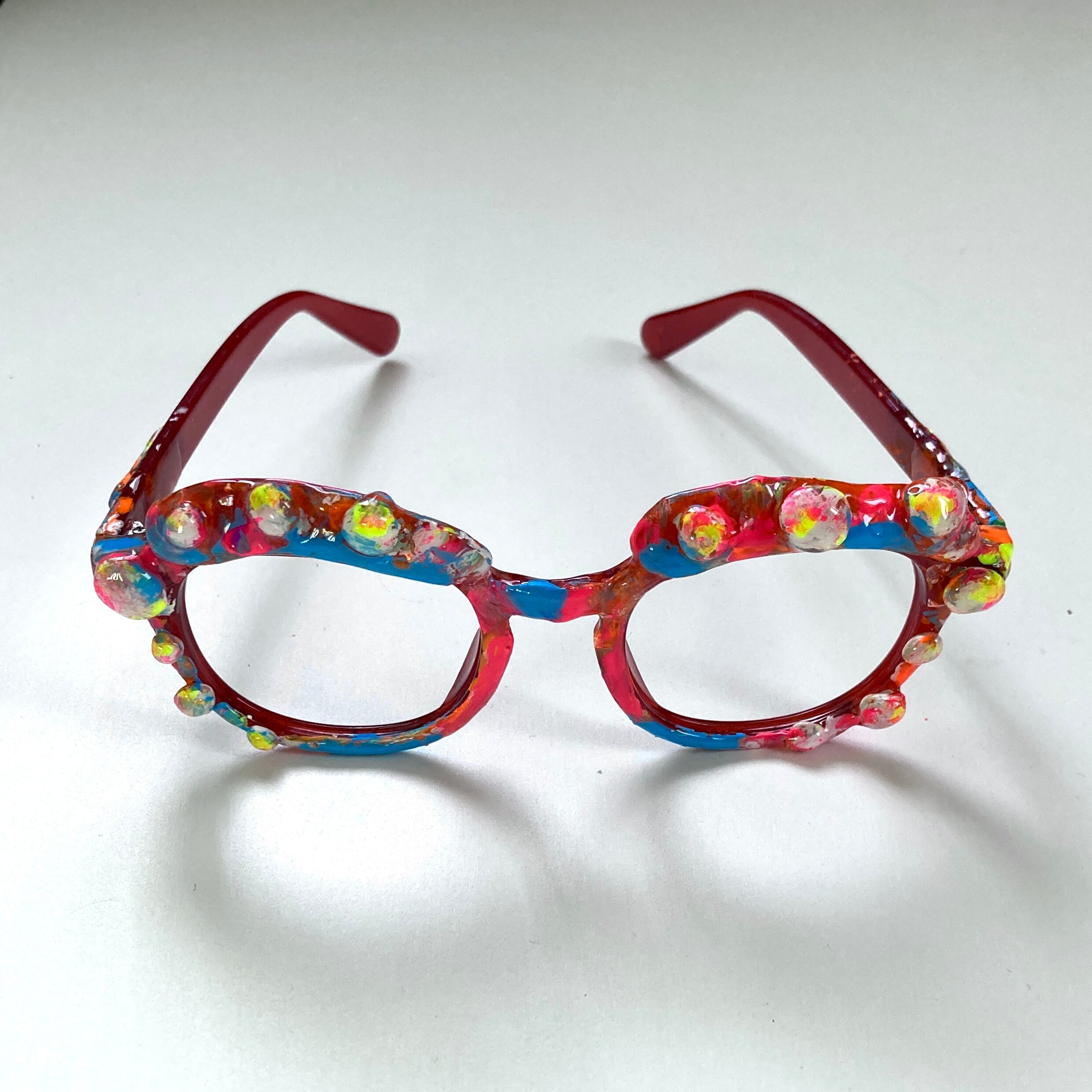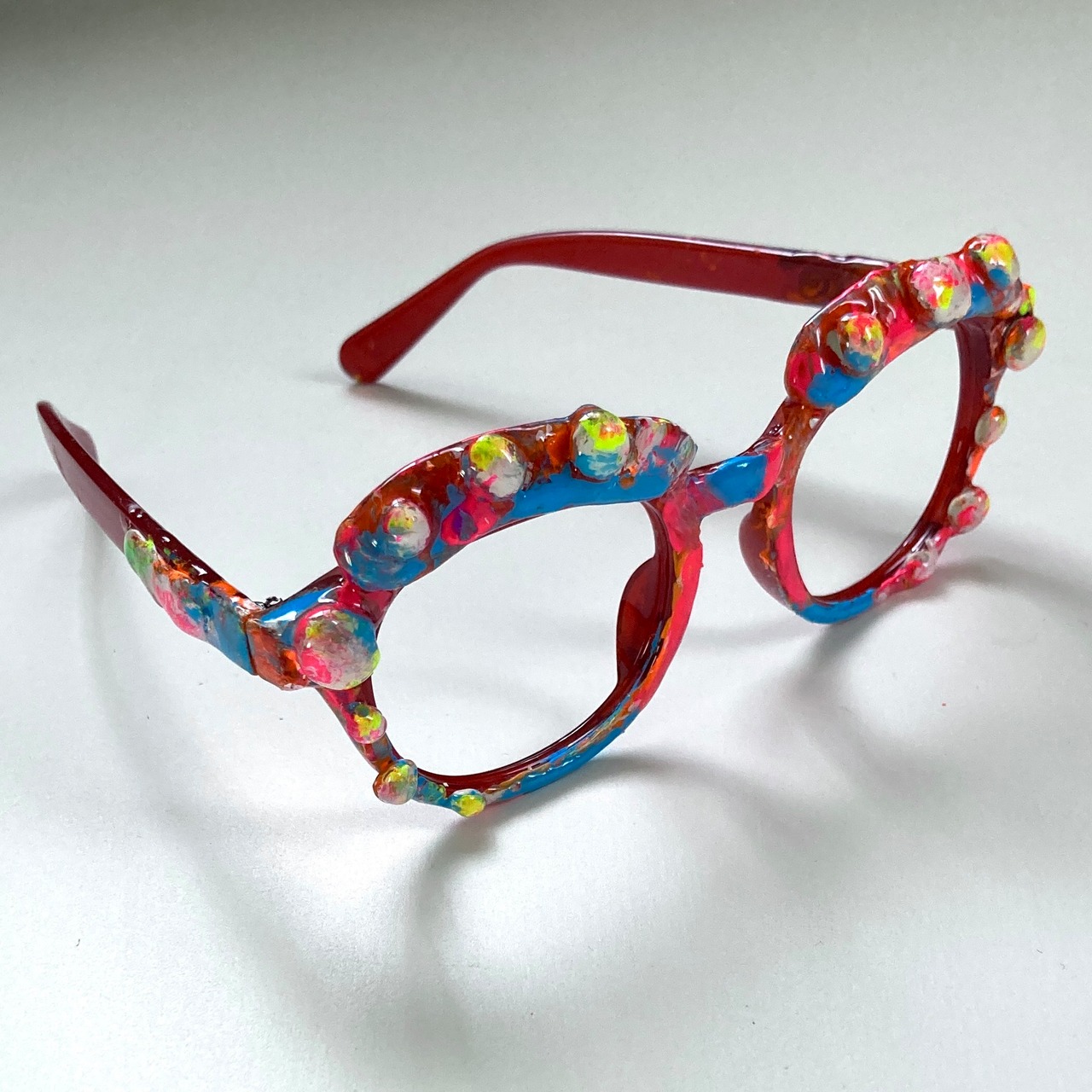 パテで装飾していて丈夫です。また、UVレジンでコーティングしてあるので、テカテカしています。内側、耳に当たる部分、ネジで固定してある部分は、肌の当たりを良くするため、あえて着色やコーティングはしていません。